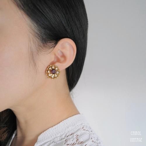 COROコロ アメジストxゴールドフラワーイヤリング