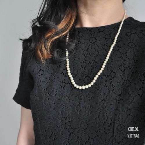 ヴィンテージな雰囲気が素敵な、ミドルレングスのグラスパールネックレス。