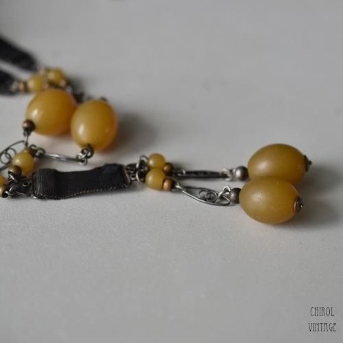 ビーズの経年にも雰囲気があり、クラシックなスタイルに仕上げてくれるレアなアンティークネックレスです。