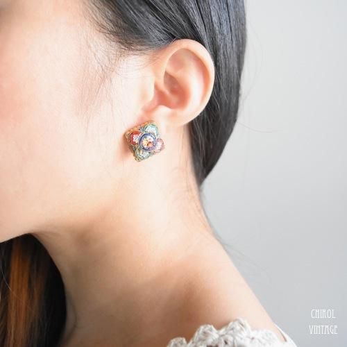 カラフルなモザイクがアイコニックな、スクエアのマイクロモザイクイヤリング。