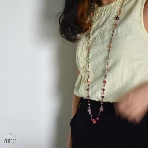 マルチシェイプのグラスビーズがいくつも使われた、アールデコの贅沢なロングネックレス。