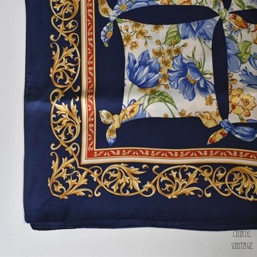 エレガントでリッチなプリントが美しい、シルクのヴィンテージスカーフ。