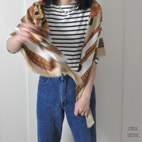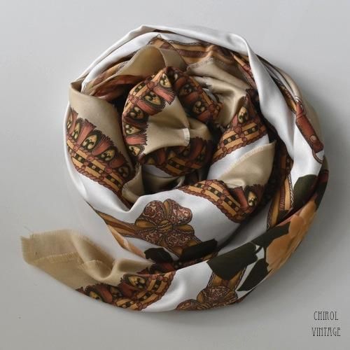 ベージュトーンのリッチなプリントが美しい、ビッグサイズのヴィンテージショール。