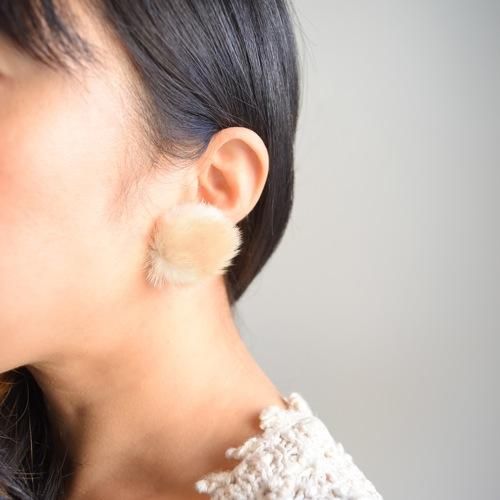 ホワイトとペールブラウンのリアルミンクファーが使われた、ボタンシェイプのクリップイヤリング。