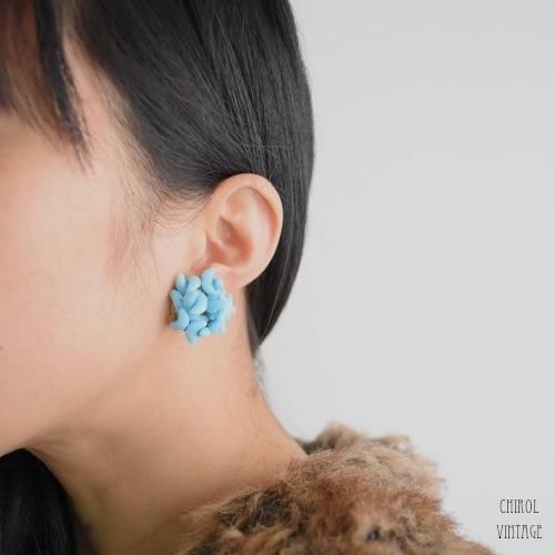 ユニークなムーンシェイプのグラスビーズが、こんもりとクラスターしたかわいいイヤリング。