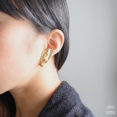 フラワーペタルのようなゴールドメタルがユニークなデザインのクリップイヤリング。