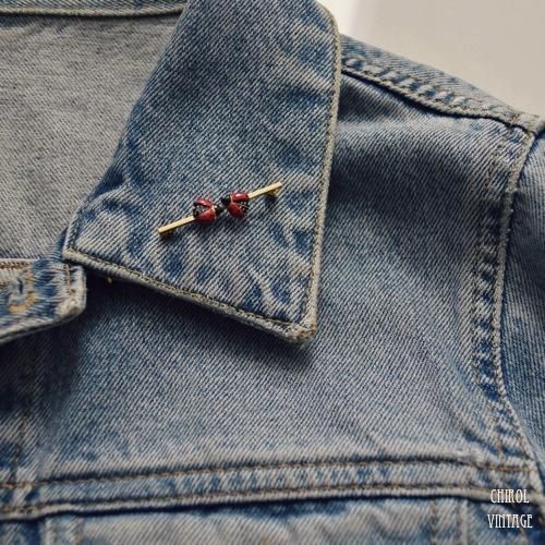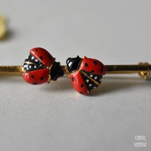 リアルサイズの小さなてんとう虫が可愛らしい、ゴールドプレートのバーブローチ。