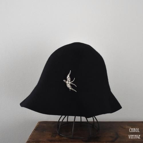 立体的に、丁寧にハンドクラフトされたツバメのウィングには、落ち着いた透明感のあるアンティークのクリアグラスが、しっかりと埋め込まれて爪でセットされています。