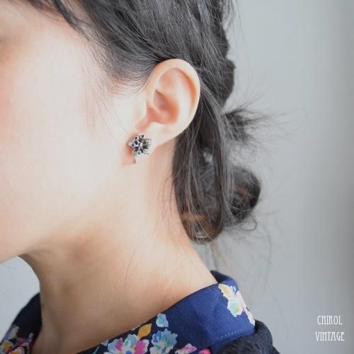 フラワーに埋め込まれたクリアグラスも高級感をプラスして、小さいけれどしっかりと気品ある存在感を放つイヤリング。