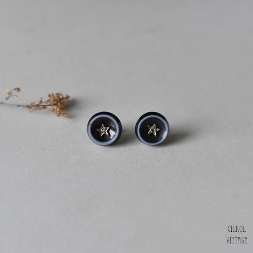 ヴィクトリアンのバンデットアゲートに、15Kゴールドのスターがピカリと可愛らしい、アンティークのスタッドピアス。