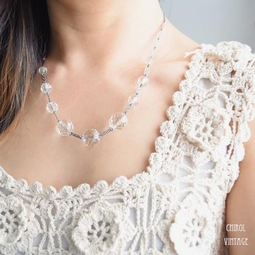 透明度の高いクリスタルグラスビーズが美しい、チェコのアールデコネックレス。