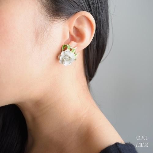 コスチュームジュエリーを代表するブランド、トリファリのエナメルフラワーイヤリング。