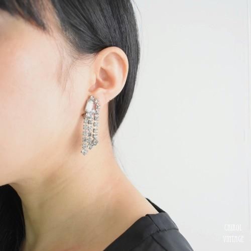 バランス良くドロップしたタッセルがラグジュアリーな、クリアビジューイヤリング。