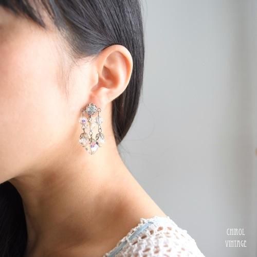 オーロラグラスがシャンデリアのようにドロップした、華やかな雰囲気のイヤリング。