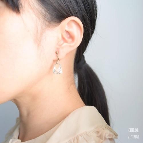 スクリュー部分から、極短いチェーンでドロップしたクリスタルグラスは、耳元で控えめにスウィングして、光を取り込みグロウするような美しい輝きは、顔周りを明るく涼しげに見せてくれます。