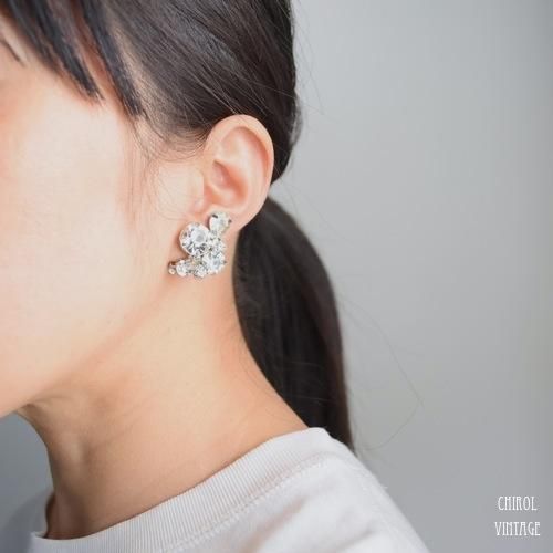 ゴロッとしたクリアビジューがトレンドなイメージのクリップイヤリング。
