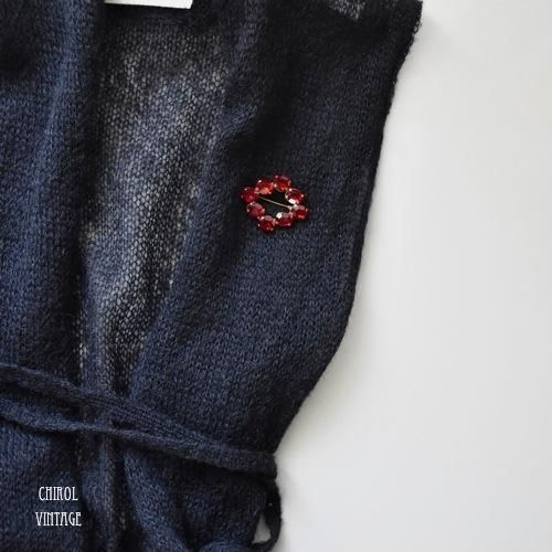リッチなチェリーレッドのビジューが素敵なブローチ。