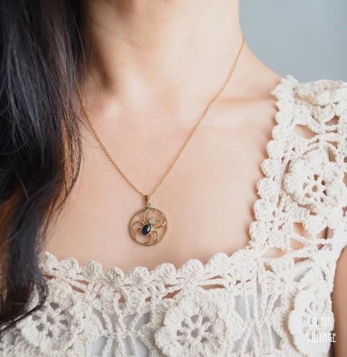 ブルーカボション リトルスパイダー ペンダントネックレス