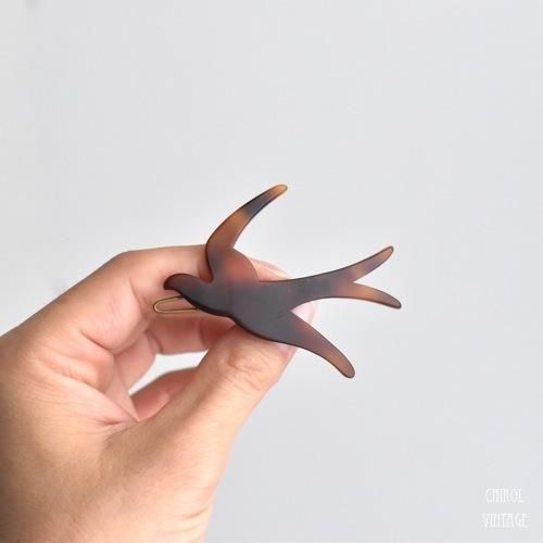 ツバメのシェイプがかわいい、セルロイド製トータスシェルのヴィンテージヘアクリップ。