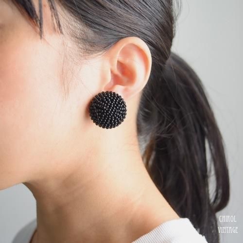 ボリュームあるブラックシードビーズのドームイヤリング。