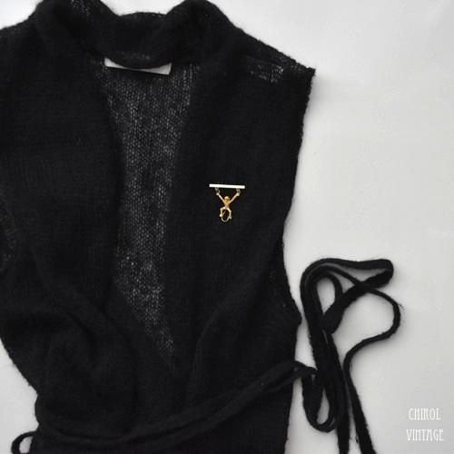 個性的で存在感もあるブローチですが、小さめなサイズが胸元にもさらりと付けやすく、カジュアルにお使いいただけます。