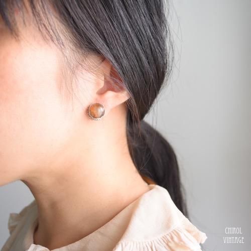 スターリングシルバーにモスアゲートのカボションがセットされた、アンティークなイヤリング。