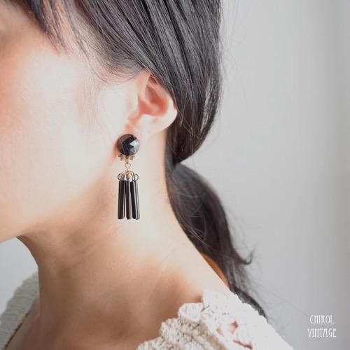 フレンチジェットのストロービーズが、シャンデリアのようにタッセルになった、センスあふれるイヤリング。