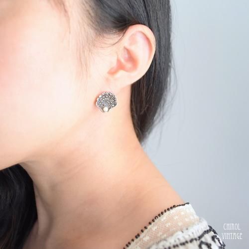 リアルパールxマーカサイト シルバーシェルイヤリング