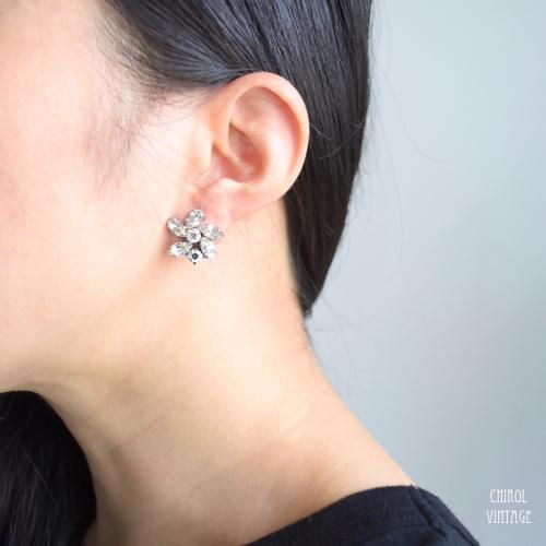 輝きの良いクリアビジューの小さなフラワーイヤリング。