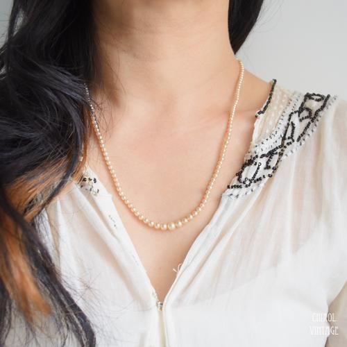 エドウォーディアンからアールデコ初期のアンティークな雰囲気が素敵な、ミドルレングスのグラスパールネックレス。