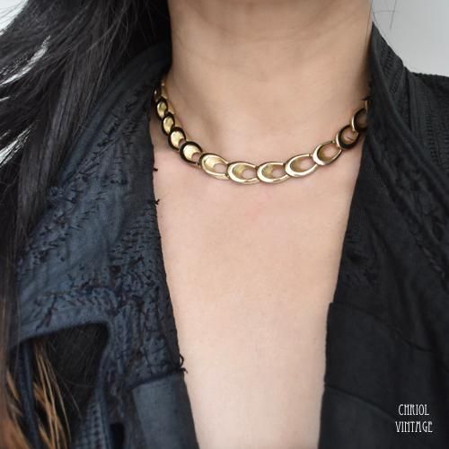 コスチュームジュエリーを代表するアメリカのブランド、トリファリのゴールドメタルネックレス。