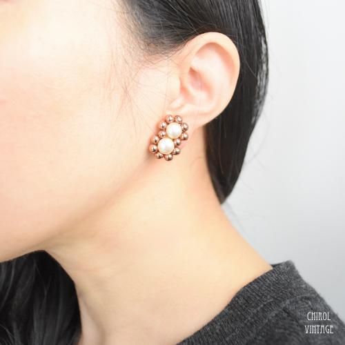 ボタンパールxコッパー ダブルフラワーイヤリング