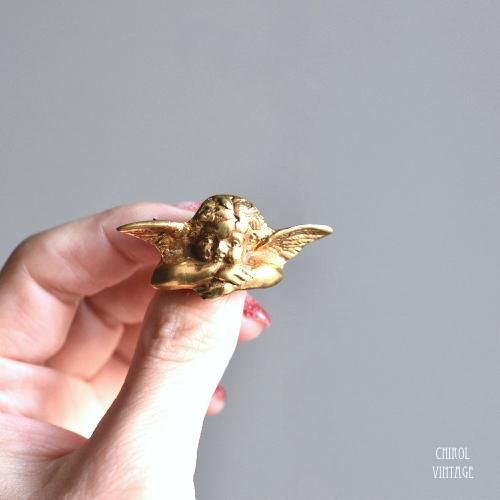 クラシックでロマンティックなモチーフ、エンジェルのゴールドメタルブローチ。