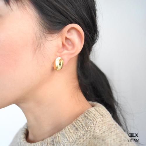 コーヒービーンのようなシェイプがかわいい、シンプルなゴールドメタルのクリップイヤリング。