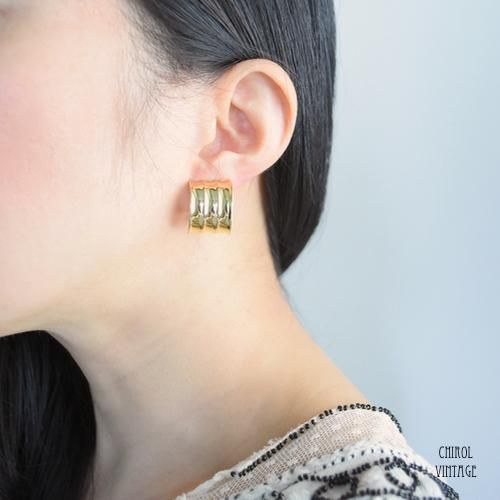 ゴールドトーンのモードなハーフチューブイヤリング。