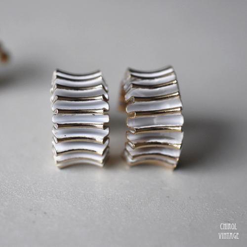 ボリュームあるホワイトエナメルのリボンが、ファッショナブルなループイヤリング。