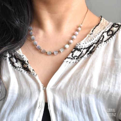独特のテクスチャーが美しい、フロストサテングラスのネックレス。