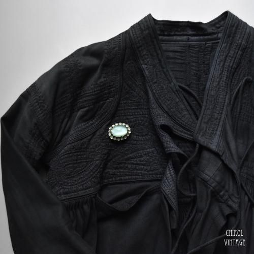 ぷっくりとしたペールグリーンのカボショングラスのブローチ。
