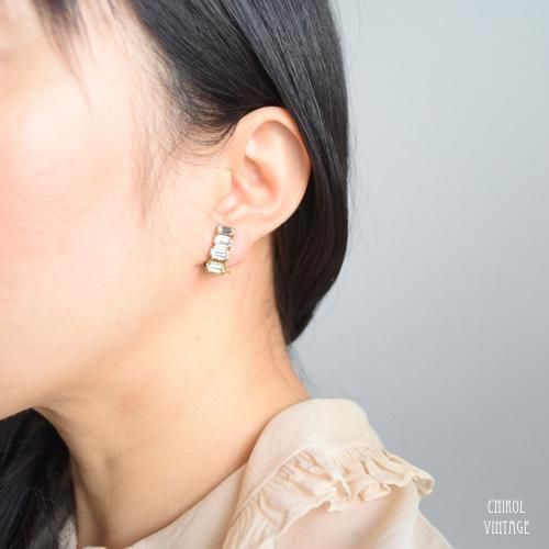 クリアエメラルドカットビジュー ミニイヤリング