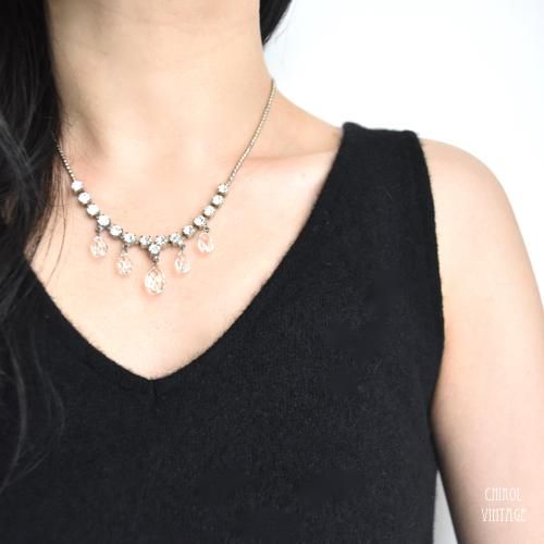 透明感あふれるクリスタルグラスがとてもみずみずしい、アールデコのネックレス。