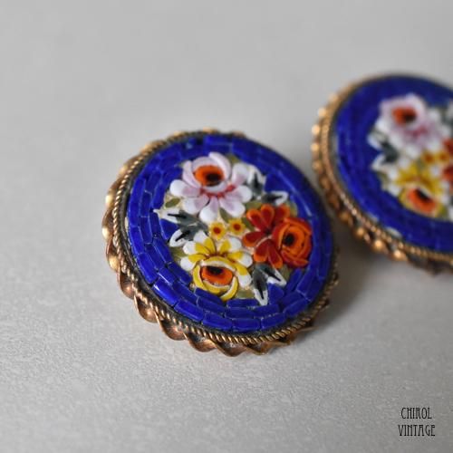 コレクタブルなマイクロモザイクのクリップイヤリング。