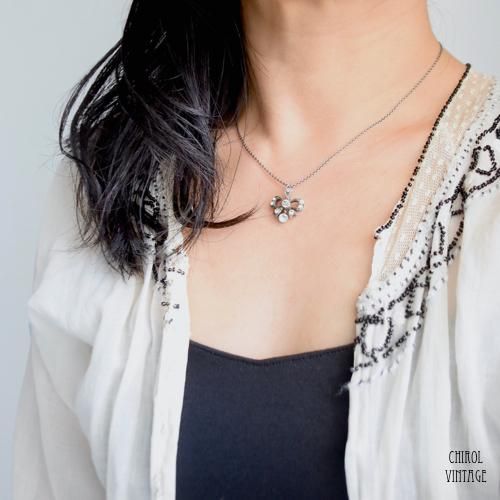 エドウォーディアンのアンティークなシルパーペンダントネックレス。