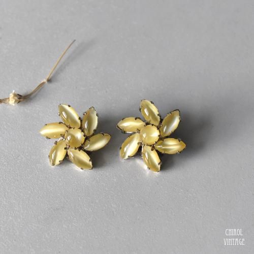 パステルカラーのサテンイエローが可愛らしい、フラワーシェイプのクリップイヤリング。