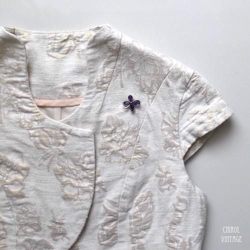 アメジストがクローバーのリーフに見立てられた、アンティークのシルバーブローチ。