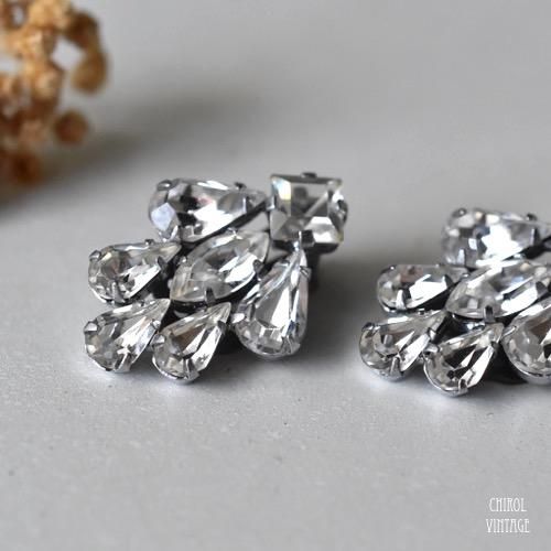 マルチシェイプのクリアビジューがコンパクトにまとまったクリップイヤリング。