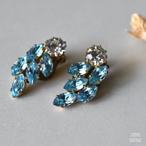 鮮やかなアクアマリンブルーが印象的な、コンパクトなサイズのビジューイヤリング。