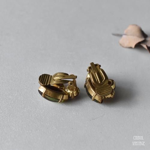 グリーンxアンバーミラーグラス ミニイヤリング