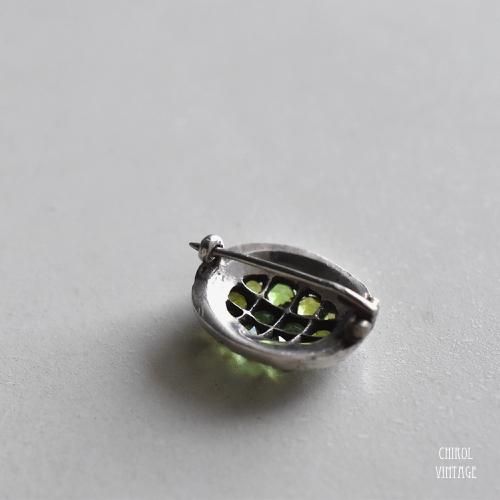 ラティスペリドットxクリアペースト オーバルシルバーブローチ