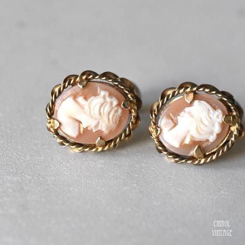 アンティークな雰囲気が美しい、シェルカメオのクリップイヤリング。