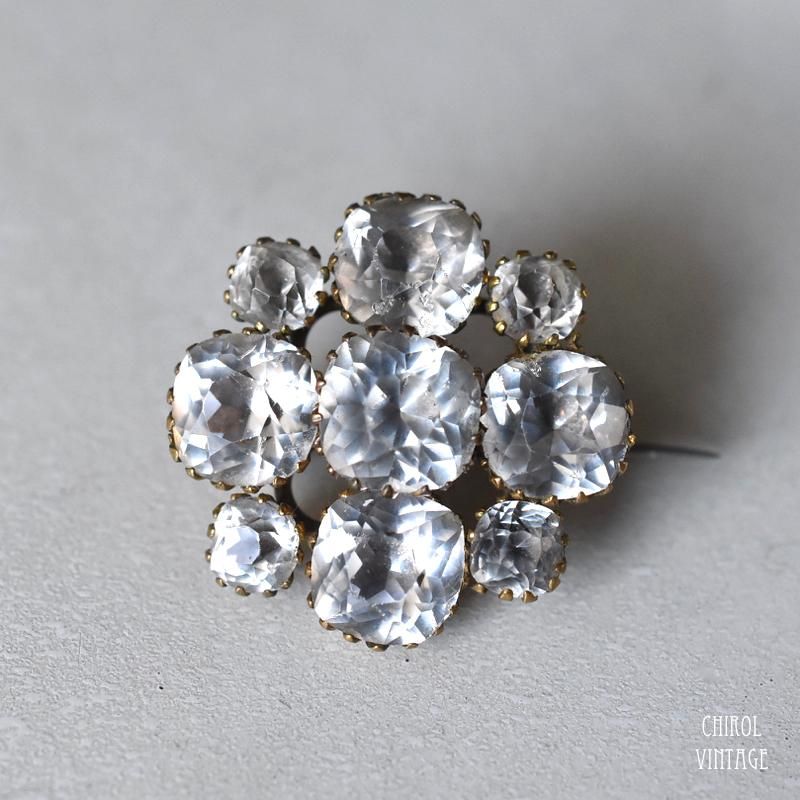 ヴィクトリアン クッションカット クリアグラスブローチ